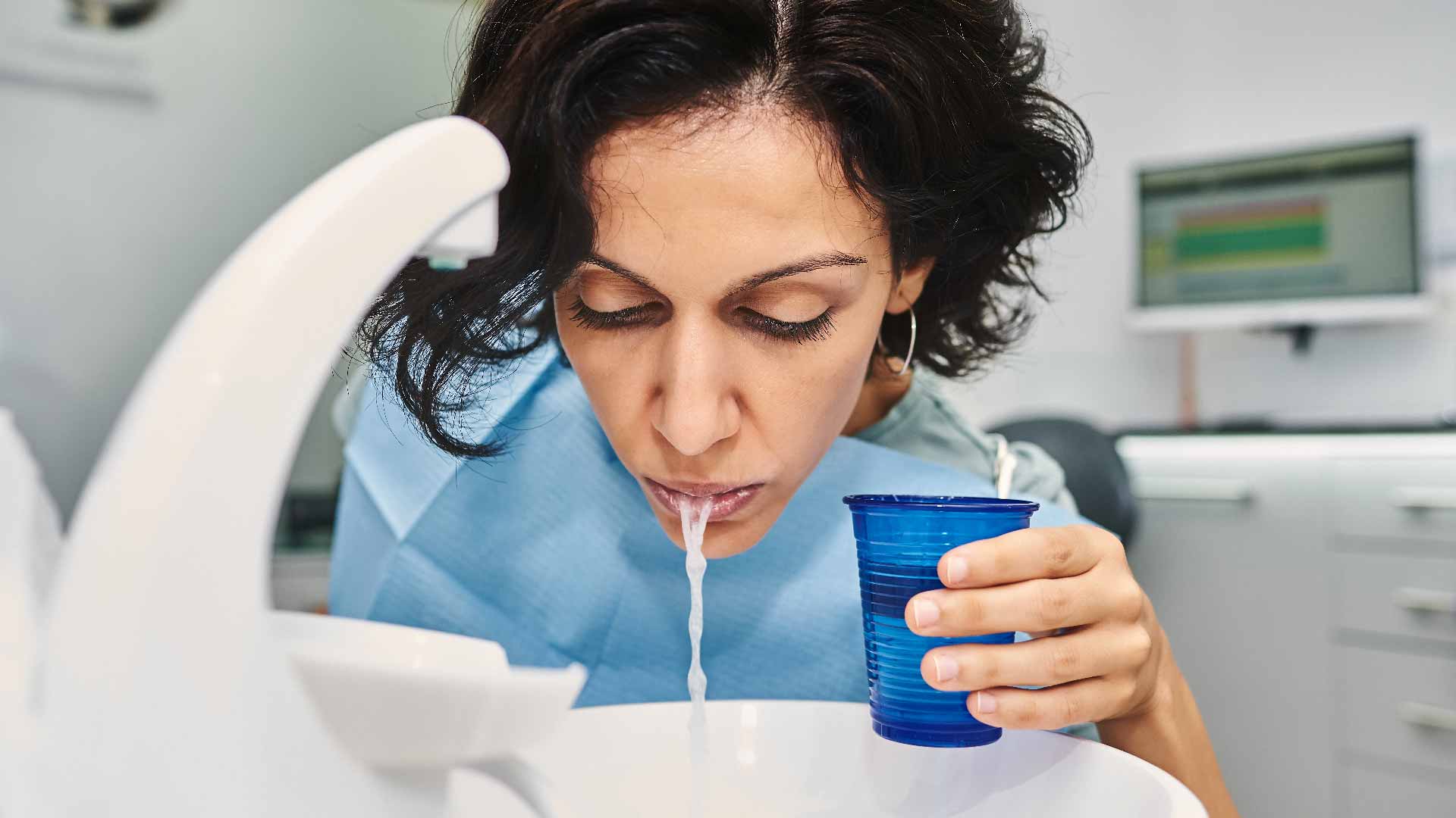 Prima di iniziare la terapia, ultimo step del paziente è effettuare uno sciacquo con soluzione di acqua ossigenata e acqua, diluiti insieme e tenuti in bocca per 60’ per poi sputare.