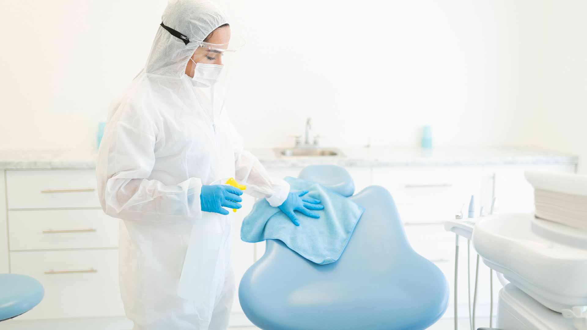 Il processo di disinfezione della sala operativa odontoiatrica, è un atto che richiede molta attenzione, unita a dei dispositivi di protezione di cui lo studio si serve.